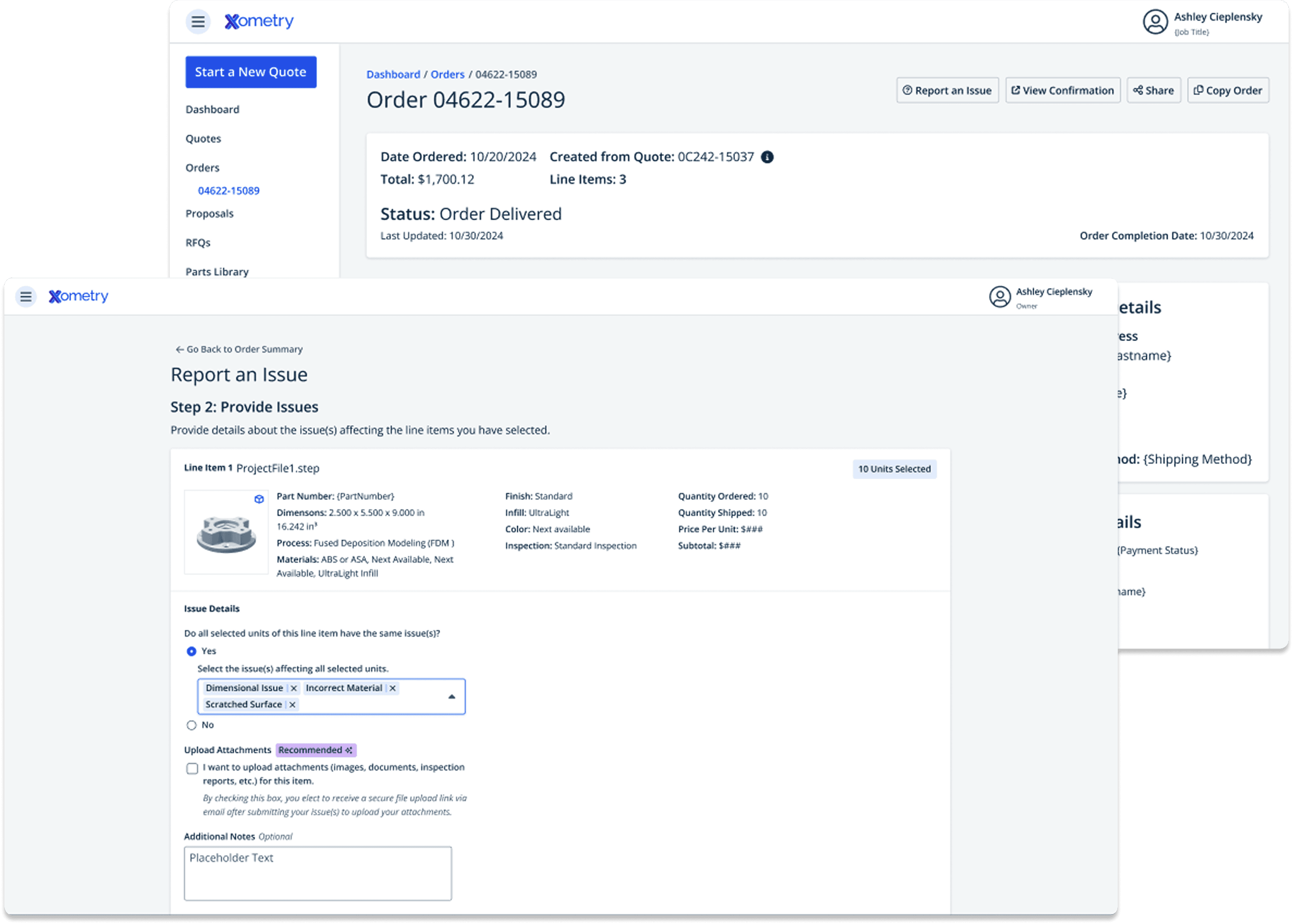 Transformed Xometry's fragmented returns process into an end-to-end RMA system, enabling customers to self-report issues and Case Managers to resolve them efficiently in one platform.